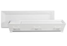 Kiste i spon og trefiber. Lakkert sort eller hvit. Sort har skrudd lokk.