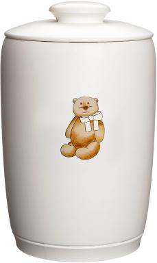 Dreid barneurne i furu. Leveres hvitmalt, blå og rosa. Hvitmalt leveres også med bamse.