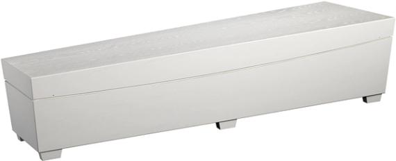 Konformet designkiste i eiketrefinert trefiberplate. Håndtak integrert i kistens sarg. Overflatebehandlet med miljøvennlig beis.