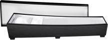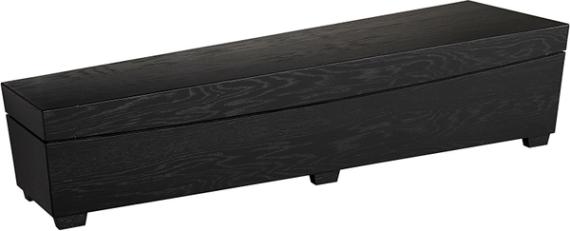 Konformet designkiste i eiketrefinert trefiberplate. Håndtak integrert i kistens sarg. Overflatebehandlet med miljøvennlig beis.