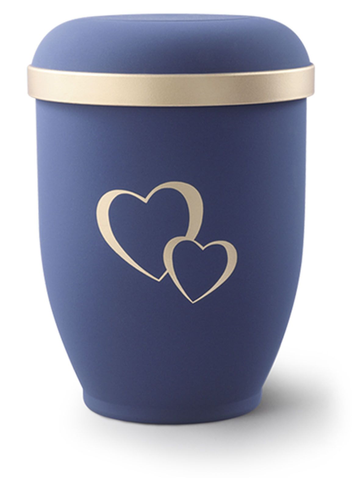 Urnen har en fløyelsaktig overflate med lokk-kant og emblem i antikkgull.