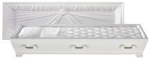 Modellen leveres med trukket lokk og drapert tøyinnredning.